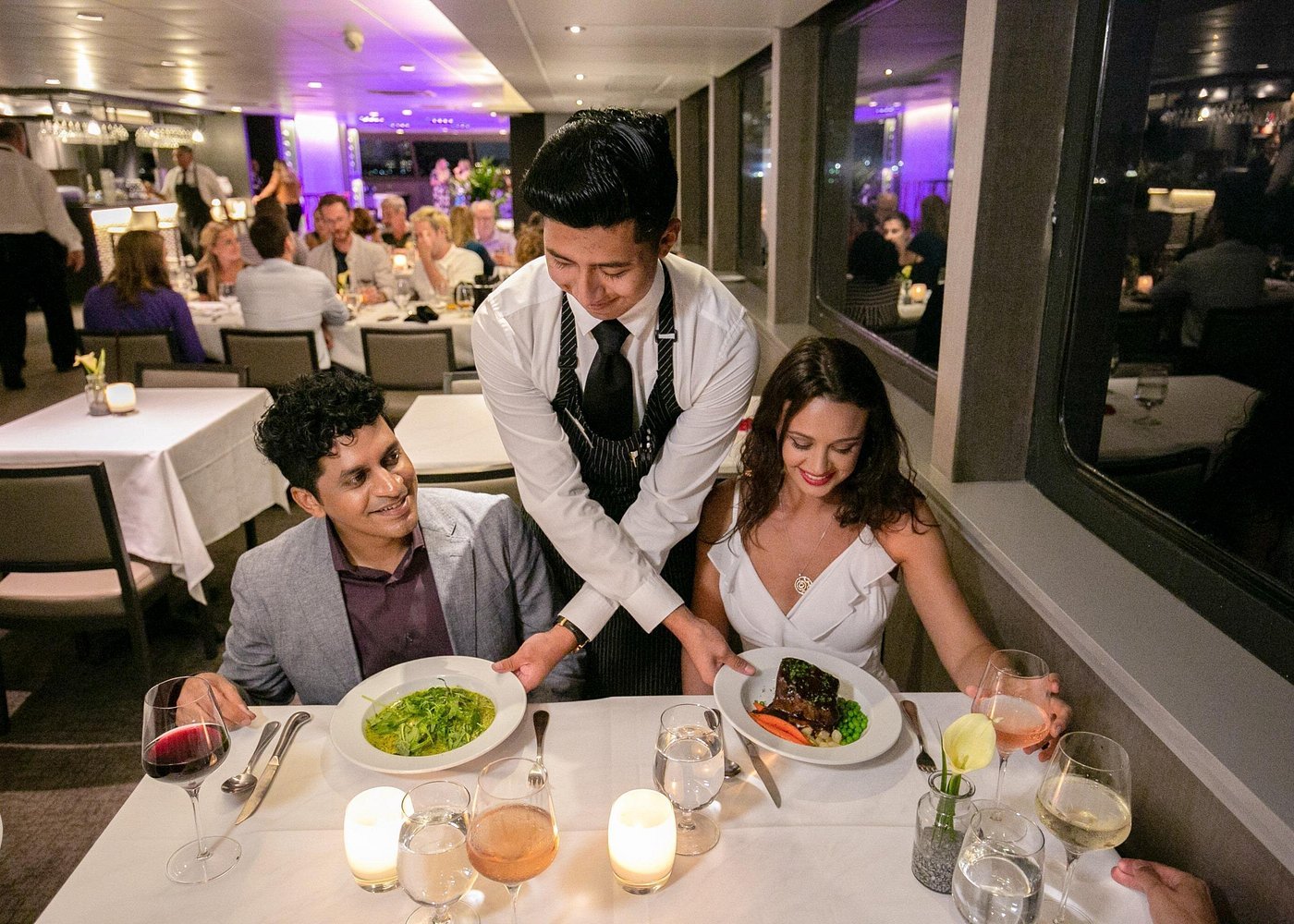 The Premier Dinner Cruise includes the selection of one salad, one main and one dessert.